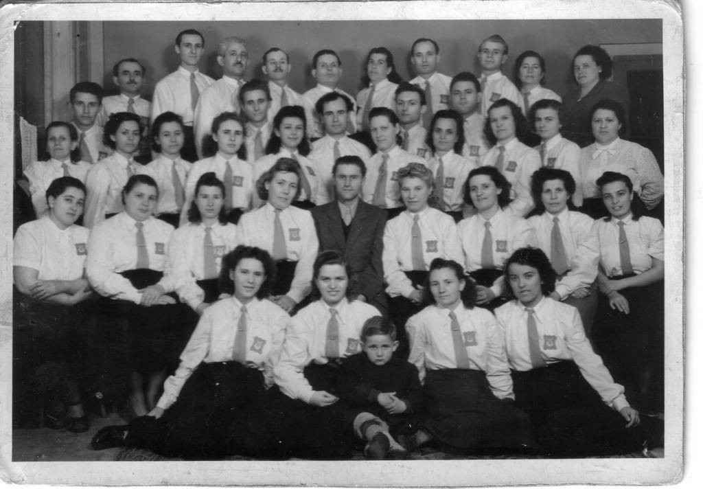 Az első vegyeskar, középen Váradi József karnagy, 1953 |