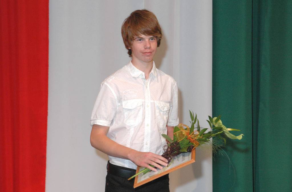 Kiss Donát Márk kiváló általános iskolai tanulmányi eredményéért veheti át az oklevelet. Szorgalma, önfegyelme példa lehet diáktársai számára.