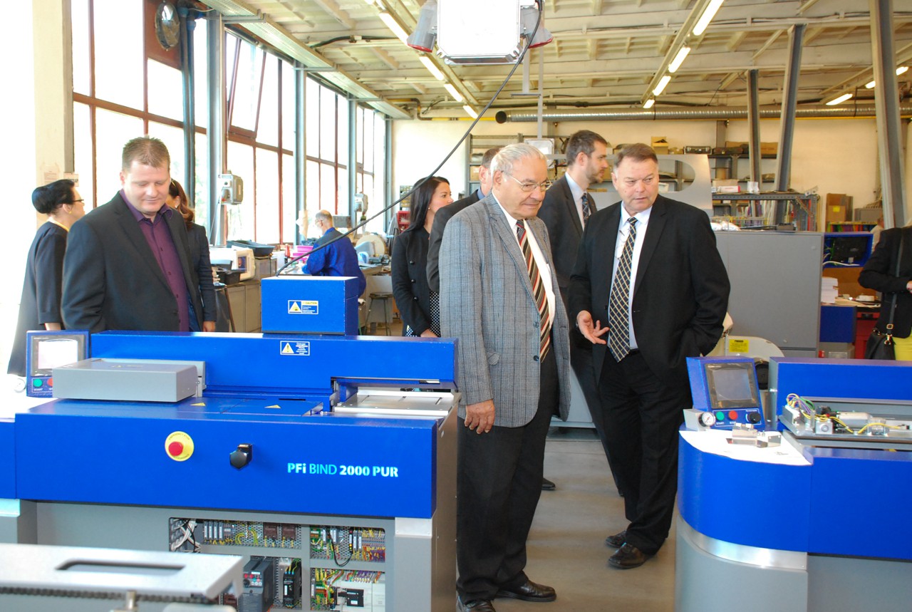 A vendégek ez alkalommal a gyártási folyamatokba is betekinthettek, munka közben megismerve a nagy teljesítményű CNC és lézervágó gépeket. Kiemelt figyelem övezte a könyvkötőgép termékcsalád gyártási és fejlesztési folyamatait, amelyek igazi sikerterméket jelentenek az egyben a fennállásának 25. évfordulóját is ünneplő RIGO Kft. számára.