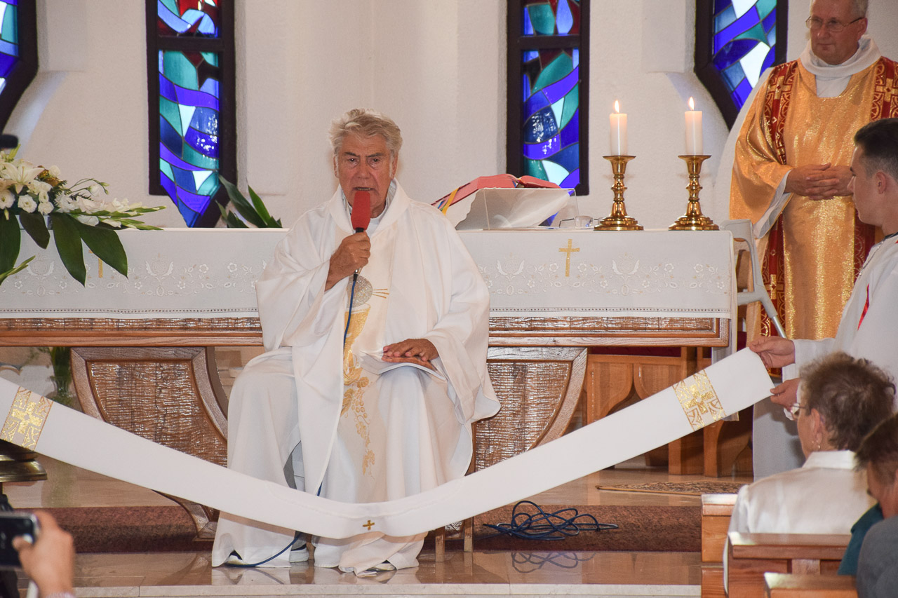 A misét követően az atyát Kovácsik Antal állandó diakónus és Dr. Papp Antal polgármester köszöntötte.