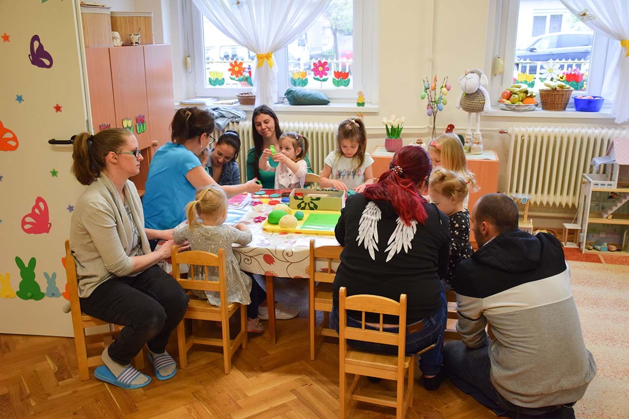 A már óvodába járó gyermekek nagy örömmel várták a kistesókkal való közös játékot, megmutatták a kedvenc játékaikat, bemutatták a barátaikat.