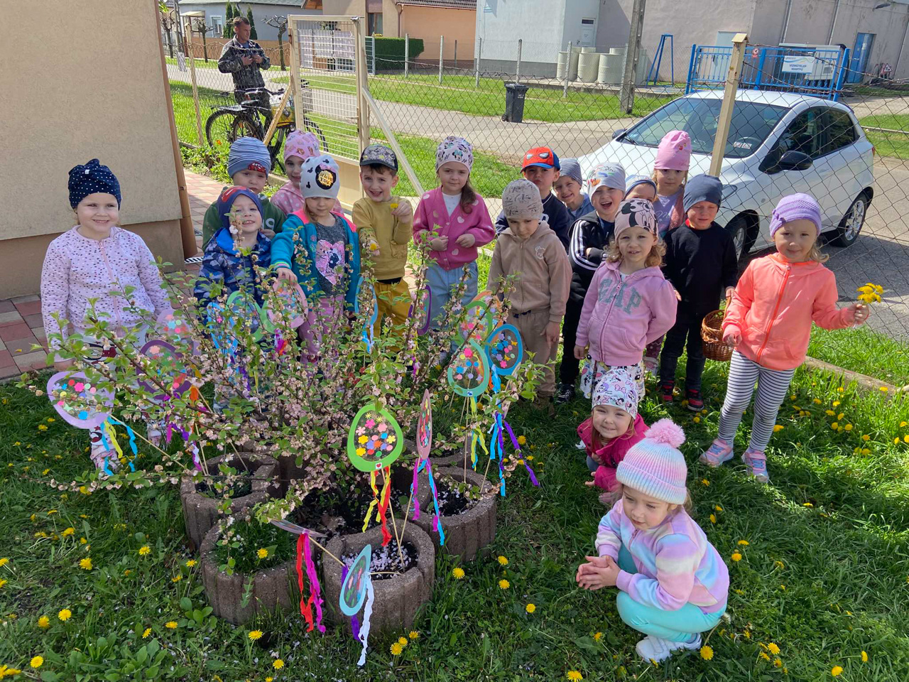 A díszes tojásokkal szebbé varázsoltuk közösen az óvoda udvarát és megalapoztuk a húsvéti hagyományok beépülését is.