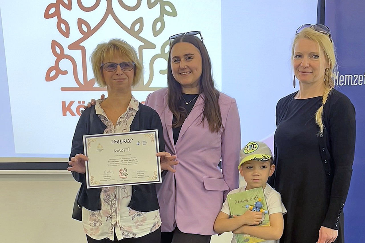Ezt követően ünnepélyes keretek között vehettük át azt az oklevelet, amely hivatalosan is tanúsítja, hogy a mi mesénk is helyet kapott Magyarország első közösségi mesekönyvében.