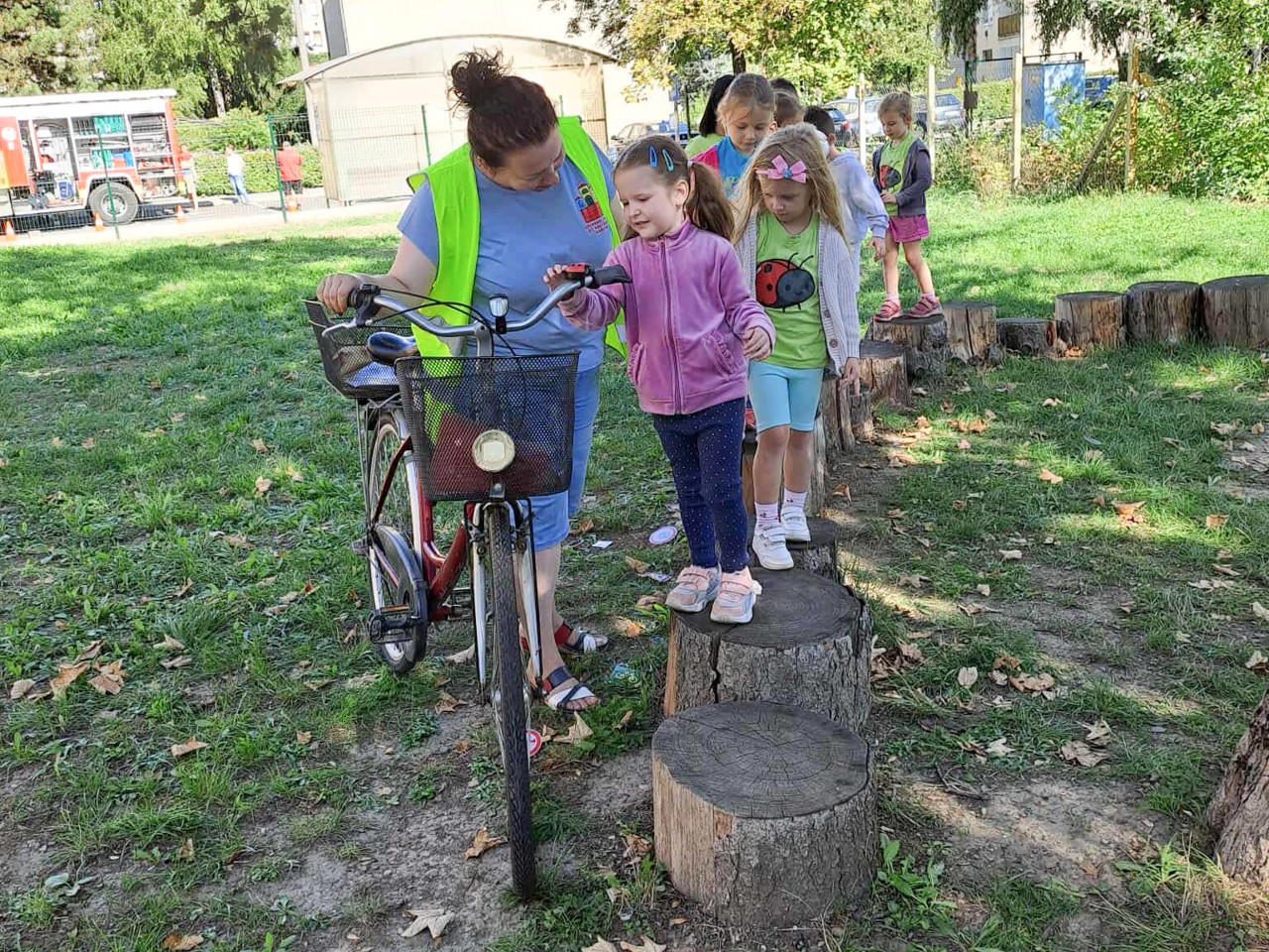 Az Autómentes napon ismét begurult hozzánk kerékpárján „Biciklis Gizi”, aki játékos feladataival a kerékpáros közlekedés fontos szabályaira hívta fel a gyerekek figyelmét. Köszönjük „Biciklis Gizinek, azaz Bettenbuch Tündének, hogy most is ellátogatott hozzánk és egy jót játszott a gyermekekkel!