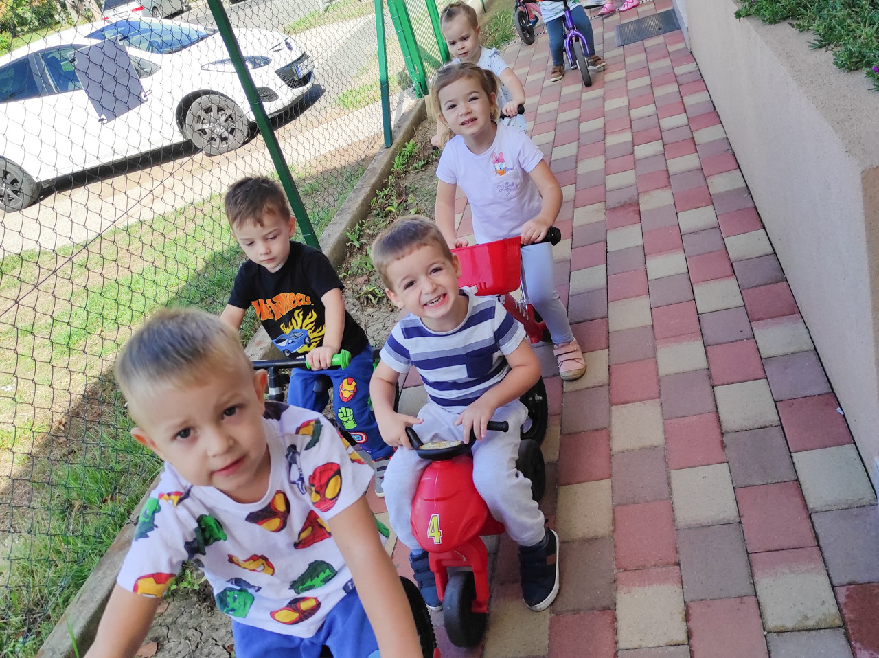A kiemelt napokon a csoportok gyermekeinek volt lehetőségük a saját „járgányaikat” behozni az óvodába és együtt közlekedhettek vele. A „Kacaj-Bicaj” napon az idősebb csoportoknak volt lehetőségük befoglalni a Martos Flóra utcát és a kolleganőim által megrajzolt különböző útvonalakon manőverezhettek. Az óvoda kiépített területei a kisebb csoportok terepe volt, ahol a gyermekek számára legfontosabb közlekedési táblák mutatták az utat. Köszönöm a munkatársaimnak az együttműködő munkájukat, amivel hozzájárultak a programok megvalósulásának sikeréhez!