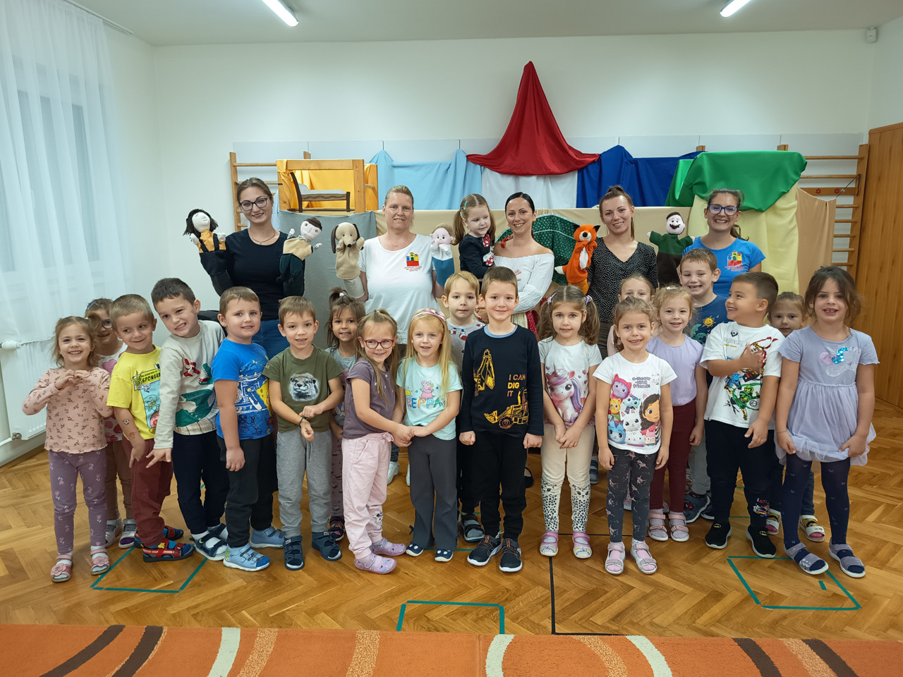 A legkisebbeknek hangulatos mesefoglalkozást tartott óvodánkban Székácsné Tálas Gabriella és Bihari Erzsébet kedves mondókákkal, népdalokkal és papírszínház mesével. A nagyobbak a Művelődési Házban szervezett interaktív mesedélutánon vehettek részt. A Munkácsy úti Óvoda óvodapedagógusai Molnár Éva óvodapedagógus szervezésében bábjátékkal is meglepték a gyerekeket, akik nagy örömmel fogadták az óvó nénik élményszerű előadását.