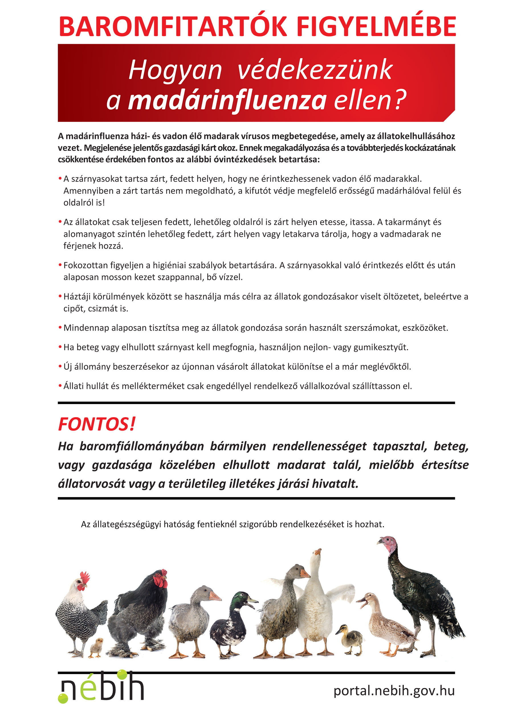 A járvány aktuális hírei, valamint a betegséggel kapcsolatos hasznos információk az alábbi, folyamatosan frissülő weboldalon elérhetőek: http://portal.nebih.gov.hu/hu/madárinfluenza.