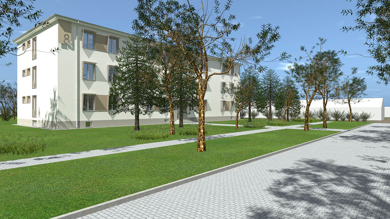 Elkészült a külső látványterv, amely már most megmutatja, milyen modern, barátságos és élhető környezet vár majd az ide költözőkre. Az önálló lakrészek kialakításán túl két kerékpártároló és új parkolók is létesülnek a környéken, külön út- és közműtervezés bevonásával.