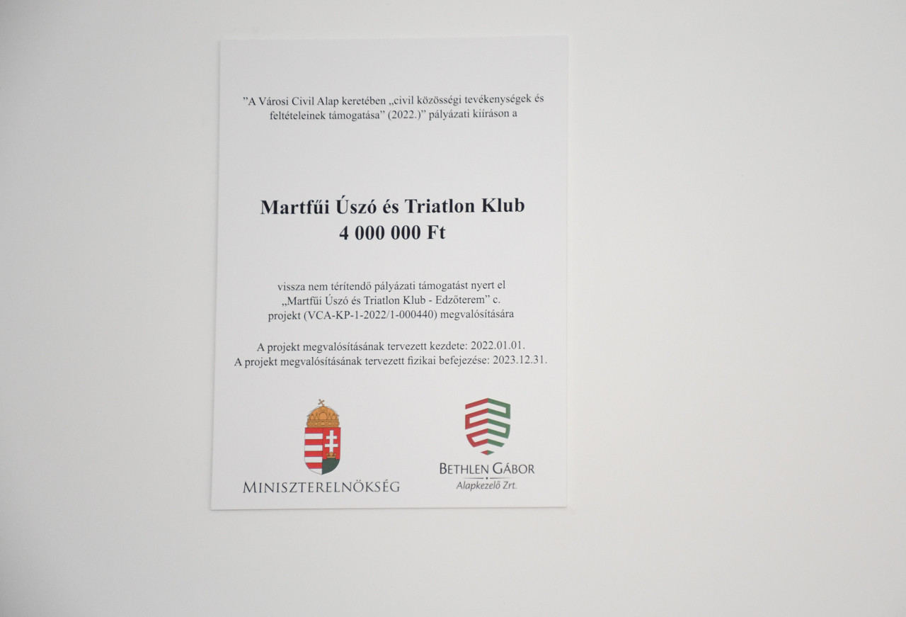 A sikeres pályázat alapján egy új, korszerű edzőteremben végezhetik a Martfűi Úszó és Triatlon Klub sportolói az edzéseket.